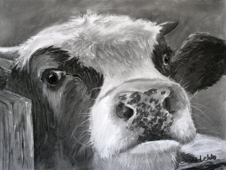 The cow portrait came came from a reference photo on the WetCanvas site I frequent. I still need to work on it, change the perspective of the fence post and tweak the values a little bit.