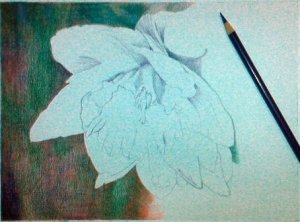 Another bad picture, but you’ll will have to wait until tomorrow for the daylight to try again. I started the flower today, so not very far in the process. I really have to work on that background. It’s in an ugly stage, but you just have to stay with me on this one.